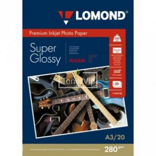 Фотобумага Lomond 1104102, A3, 280 гр., Суперглянцевая, белый, 20 листов