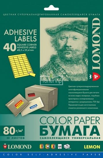 Бумага самоклеящаяся для этикеток на 40 деталей. Лимонно-жёлтая.