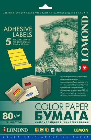 Бумага Lomond 2130245, A4, 80 гр., без покрытия, желтый, 50 листов