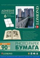Самоклеящаяся фотобумага LOMOND, 6-дел.(105,0мм х 99,0 мм)