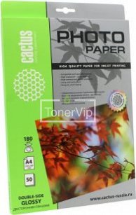 Фотобумага Cactus CS-GA418050DS, A4, 180 гр., глянец, белый, 50 листов
