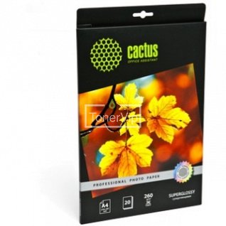 Фотобумага Cactus CS-HGA426020, A4, 260 гр., Суперглянцевая, белый, 20 листов