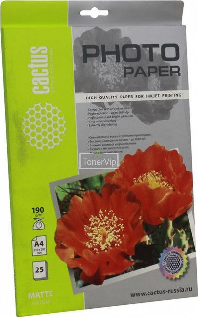Фотобумага Cactus CS-MA419025, A4, 190 гр., матовая, белый, 25 листов