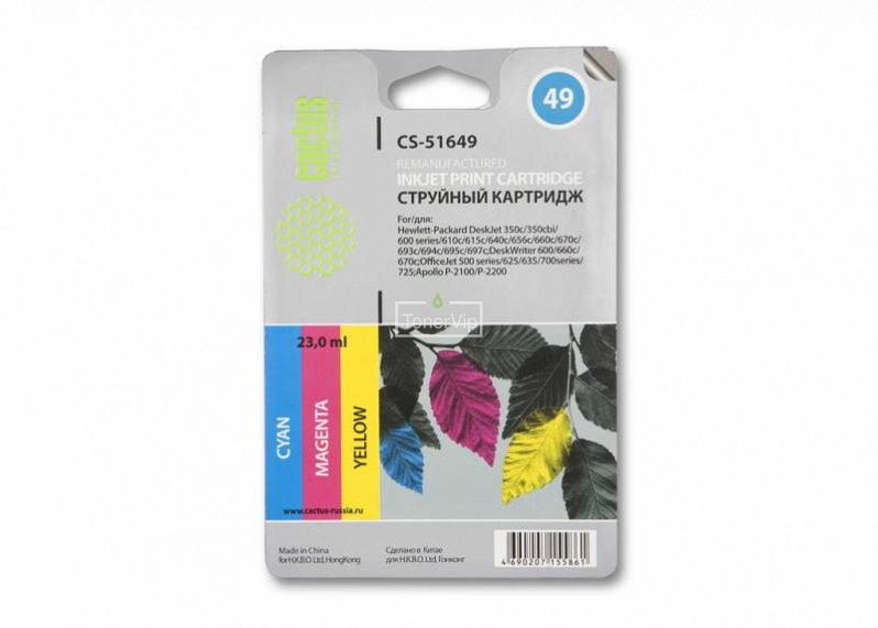 Cactus - известный бренд, специализирующийся на производстве высококачественных картриджей для принтеров. Картридж Cactus CS-51649 - это надежное решение для печати в цвете. Он подходит для использования с принтерами HP Deskjet 610c и HP Deskjet 670с.