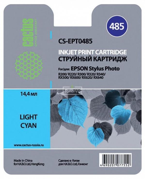 Cactus молодая компания начавшая выпускать совместимые расходные материалы по низким ценам к широкому ассортименту печатающей техники практически всех известных марок. Покупая Картридж Cactus CS-EPT0485 можете быть уверены в совместимости с вашим устройством. Так же Картридж Cactus CS-EPT0485 обеспечит хорошее качество печати за цену сравнимую с перезаправкой оригинального картриджа. Все картриджи Cactus изготавливаются на автоматизированном заводском производстве «Ninestar Image Tech Limited» с соблюдением всех юридических аспектов на интеллектуальную собственность. Компания имеет свои сервисные центры как в Москве, так и в крупных городах России. #ВегаКартридж