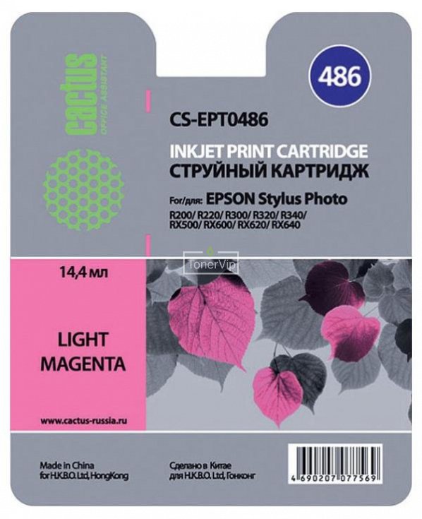 Картридж Cactus CS-EPT0486 (C13T048640) легко устанавливается в принтер и обеспечивает стабильную и качественную печать. Он совместим с принтерами Epson Stylus Photo RX640 и RX620, что делает его идеальным выбором для владельцев этих моделей.